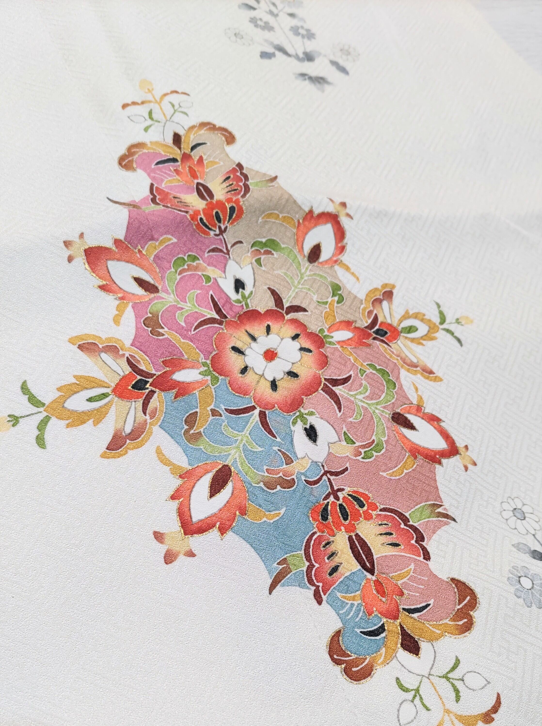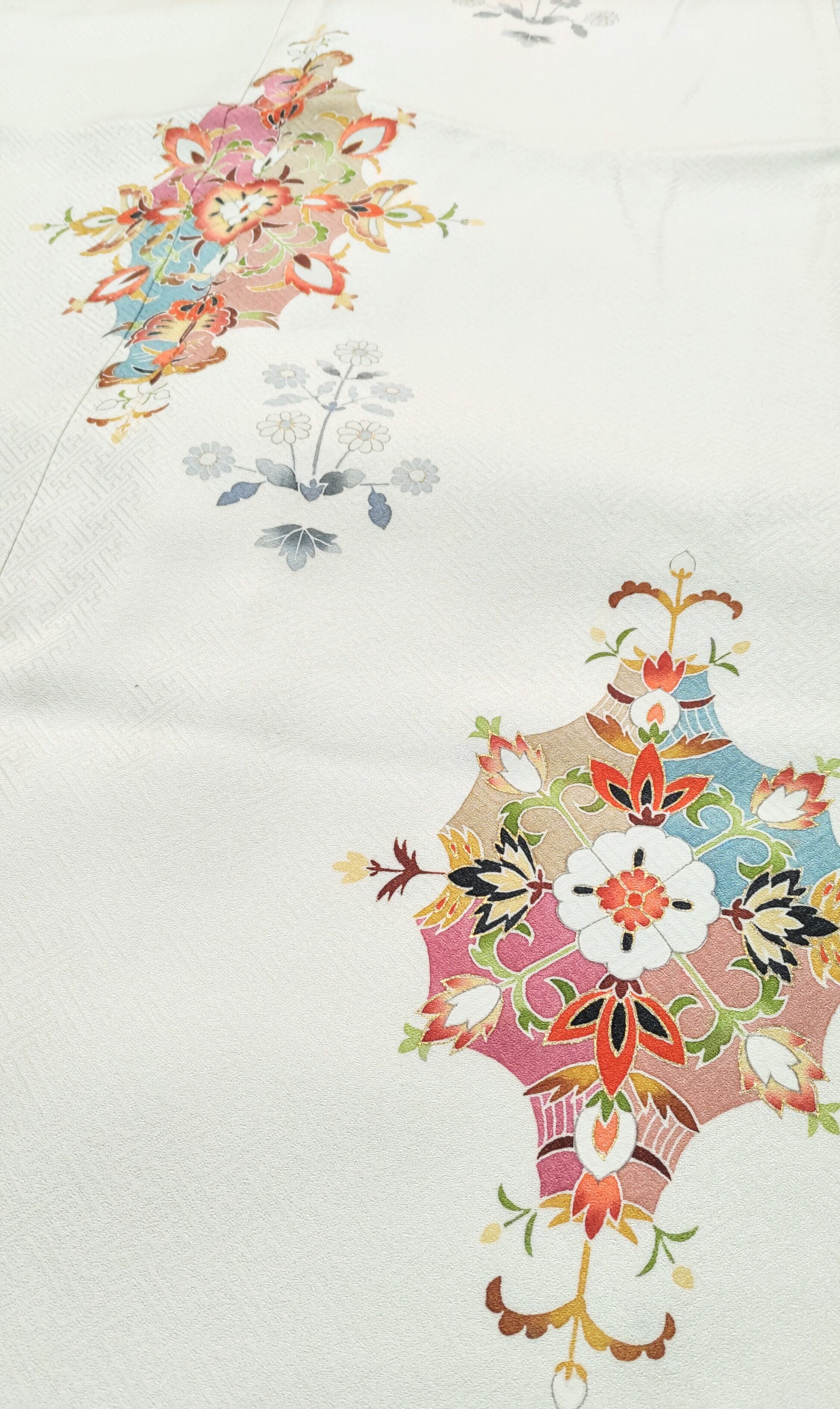 シンプルで上品な付け下げですので、お茶席や観劇など趣味の席〜、豪華な金糸や銀糸がたっぷり入った袋帯を主役に華やかさをプラスすればパーティー、結納、七五三、お宮参り、お祝いの席など様々なお使い道におすすめ◎