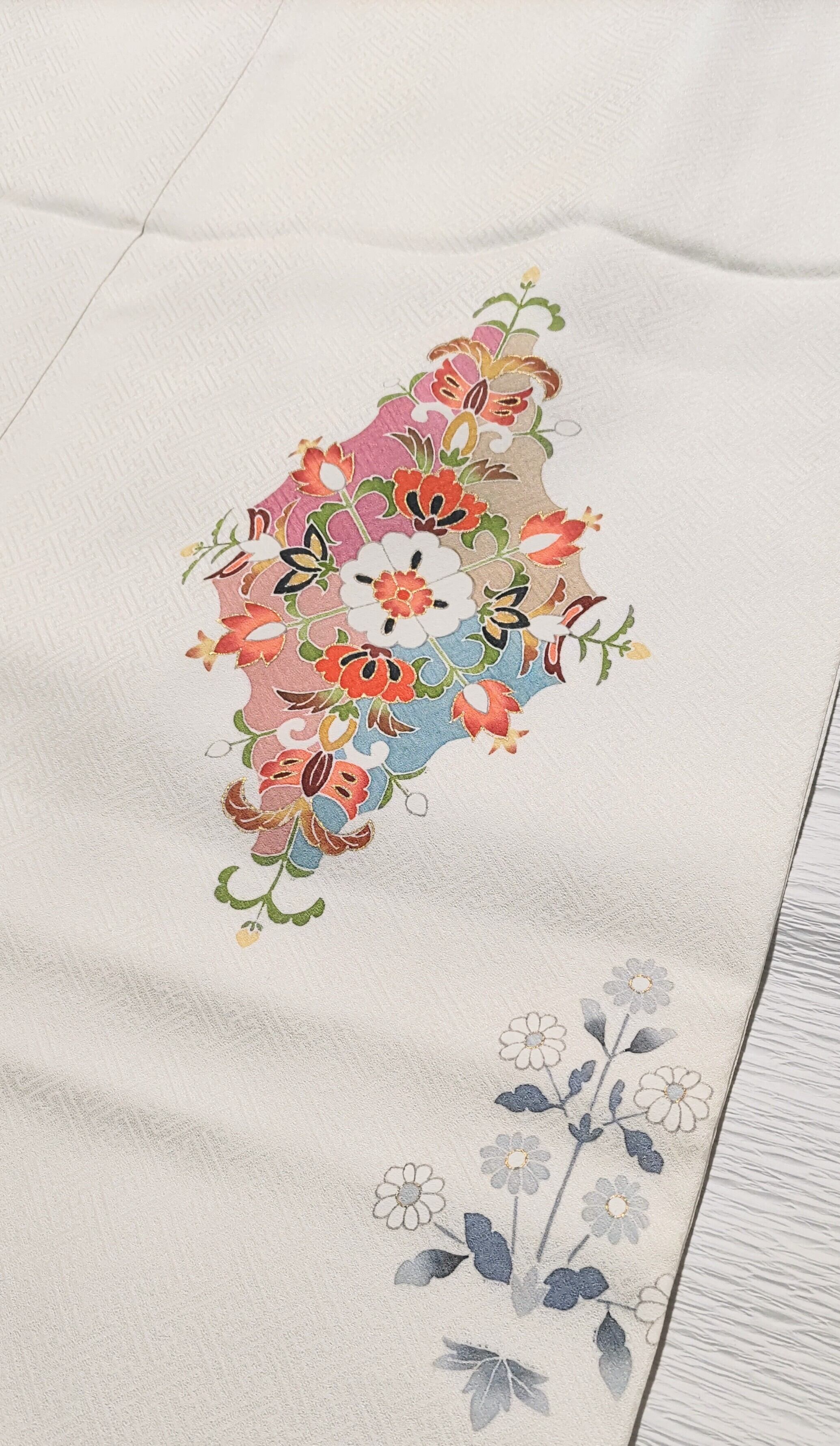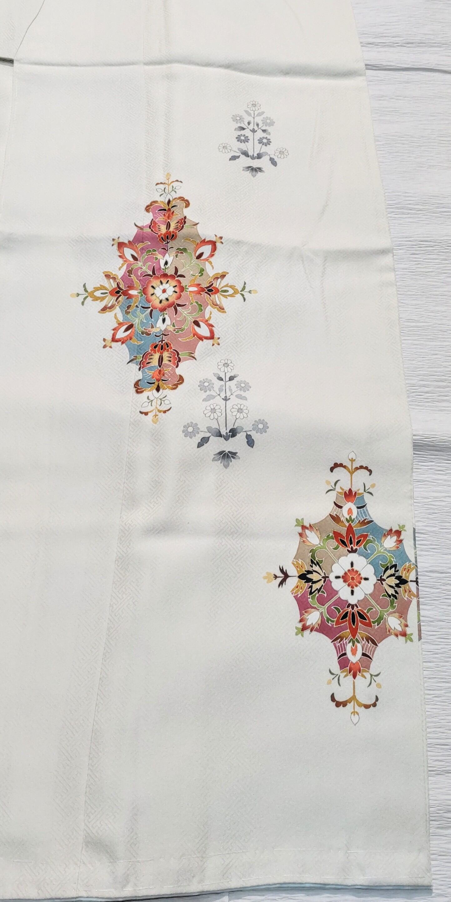 とてもシンプルな付下げですが、モチーフが目を惹くので、寂しさはなく、優しく場に寄り添ってくれる、万能なお着物◎