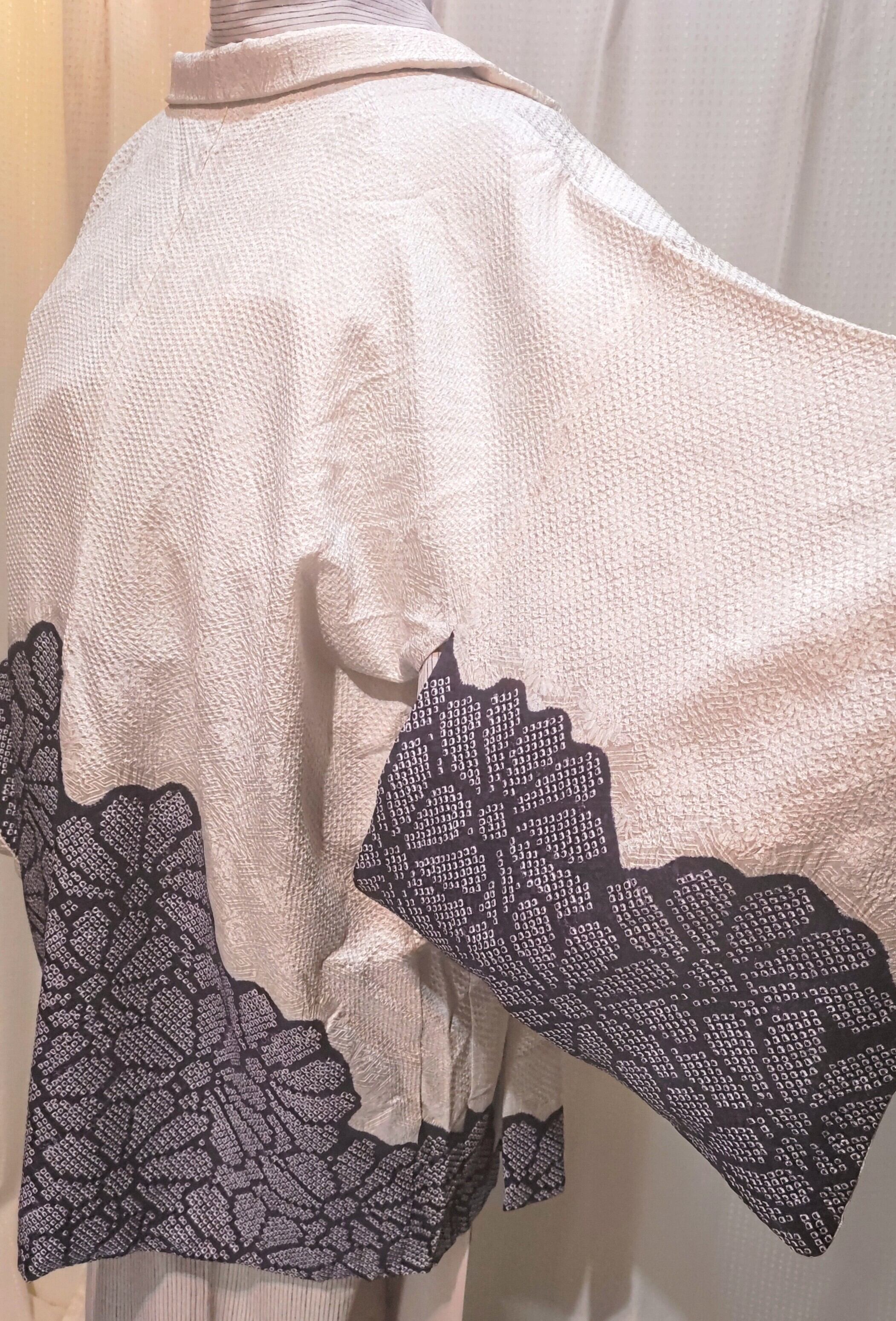 白地部分が主な絞りの羽織りは、探してもなかなか出会えないお品物です。
