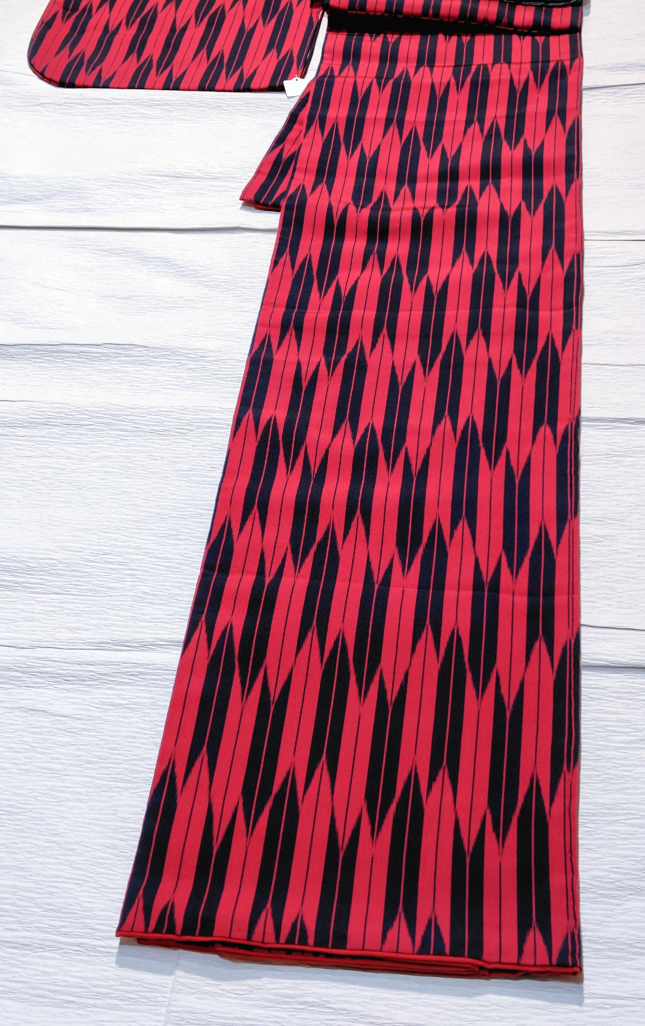矢絣のお召 赤色×紺色