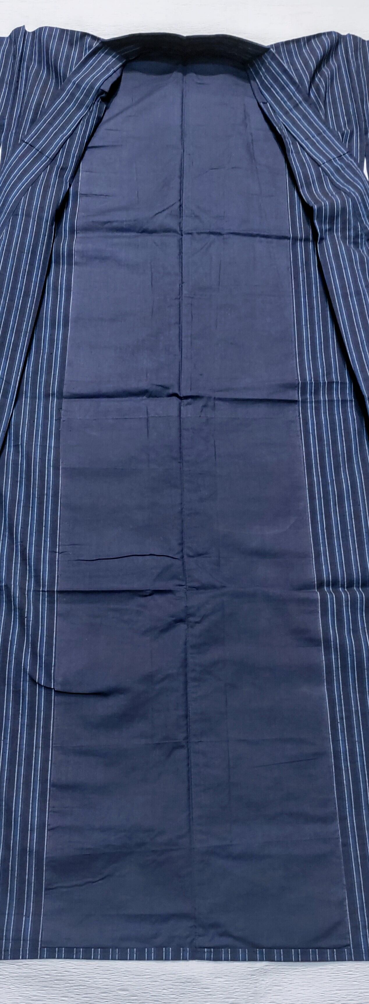 爽やかかつシックな藍染の縞柄の木綿のお着物。