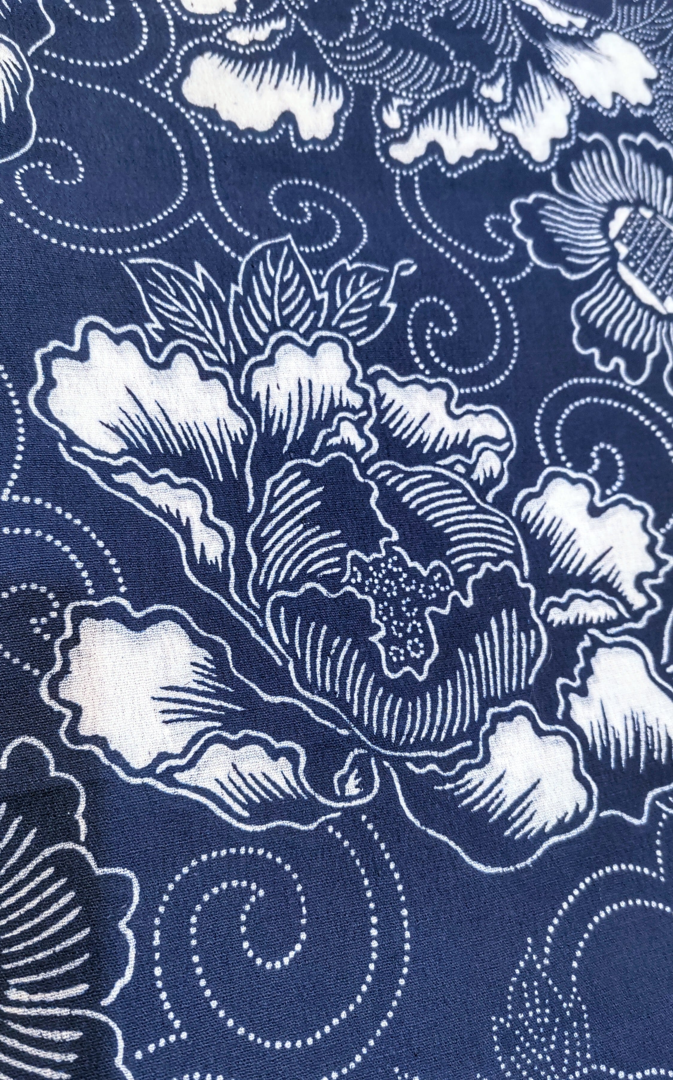 そんな木綿地に長板中形(江戸小紋のように細かい点々で表現された柄)を表裏を寸分違わずに糊付けをして、染め上げる技術……さすが職人さんのなせる技です。