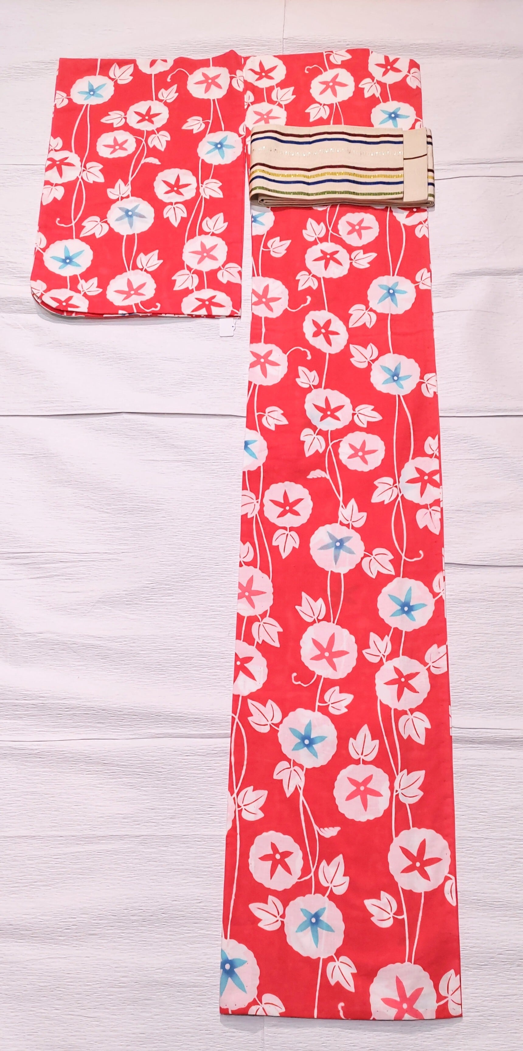 レトロ注染の浴衣 朝顔柄 お袖丈57cmです。