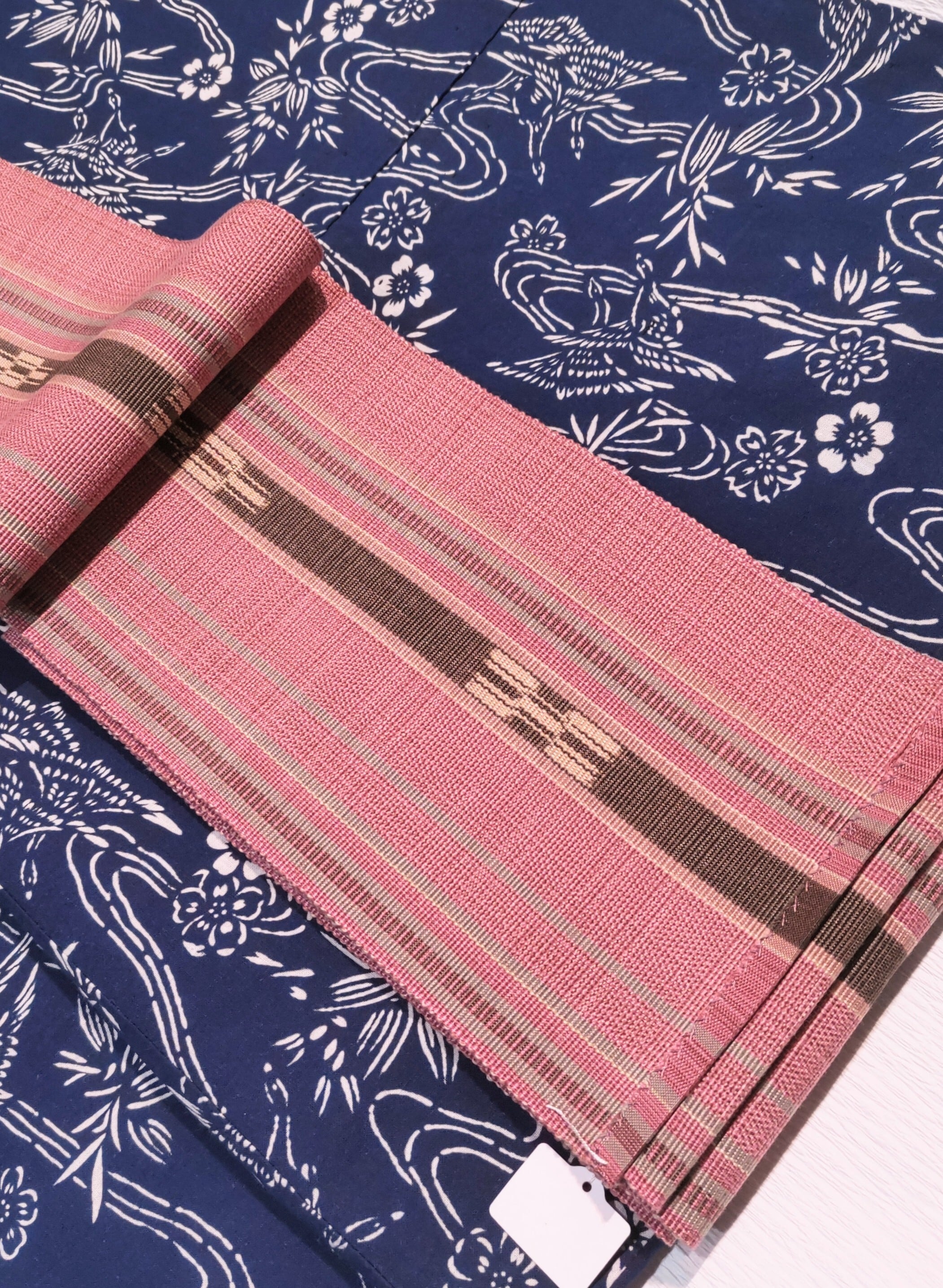 袷や単衣や夏着物、そして浴衣にも合わせられる万能な帯で結びやすく、おすすめです◎