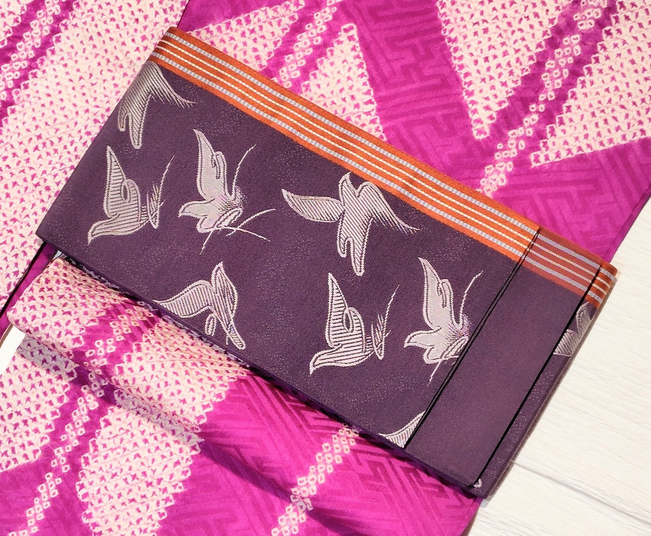 ハト柄の博多織の半幅帯は初めて見ました。