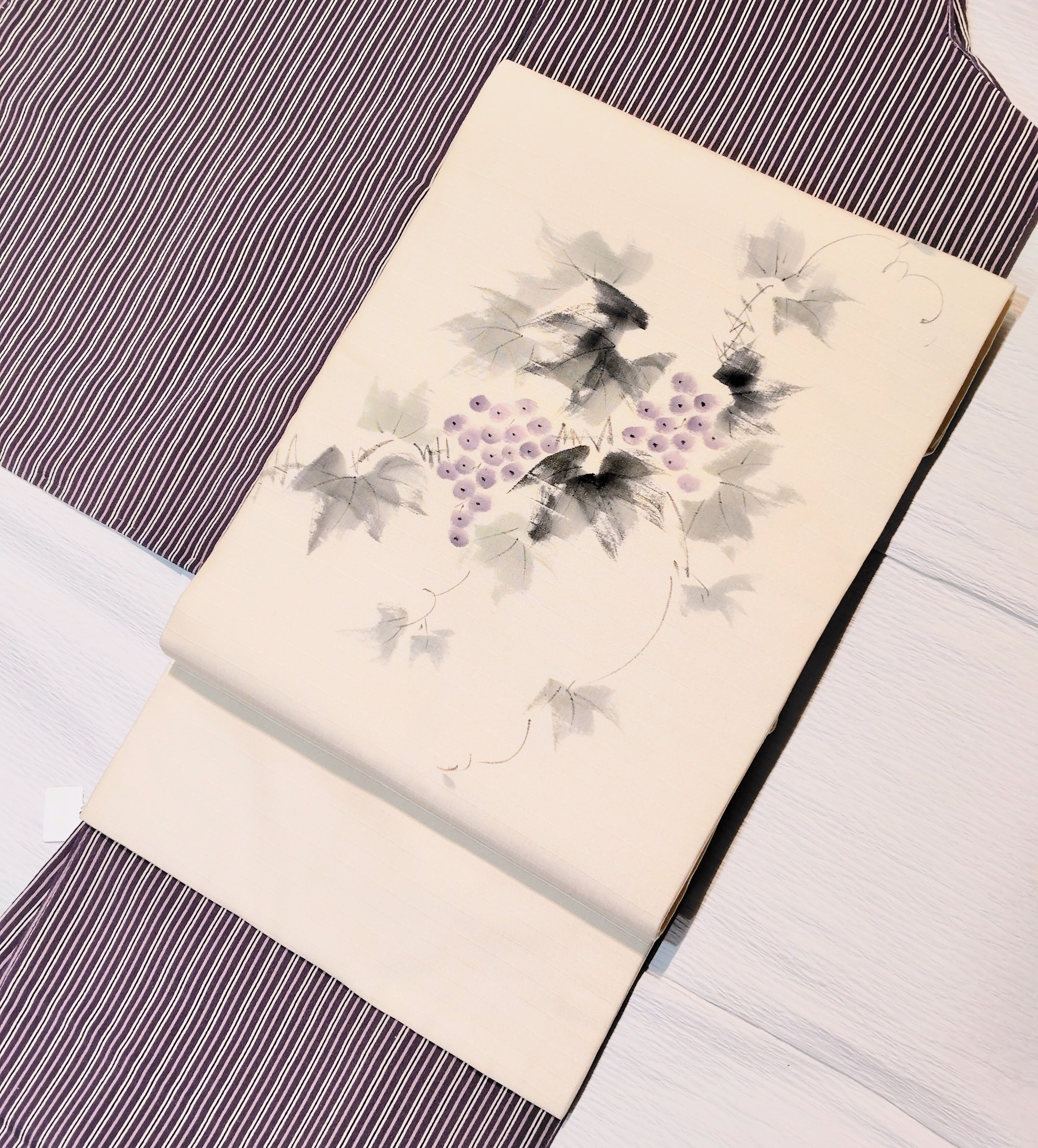 葡萄柄の帯で、おめかししてワインや葡萄ジュースを楽しむ…なんと贅沢な時間。