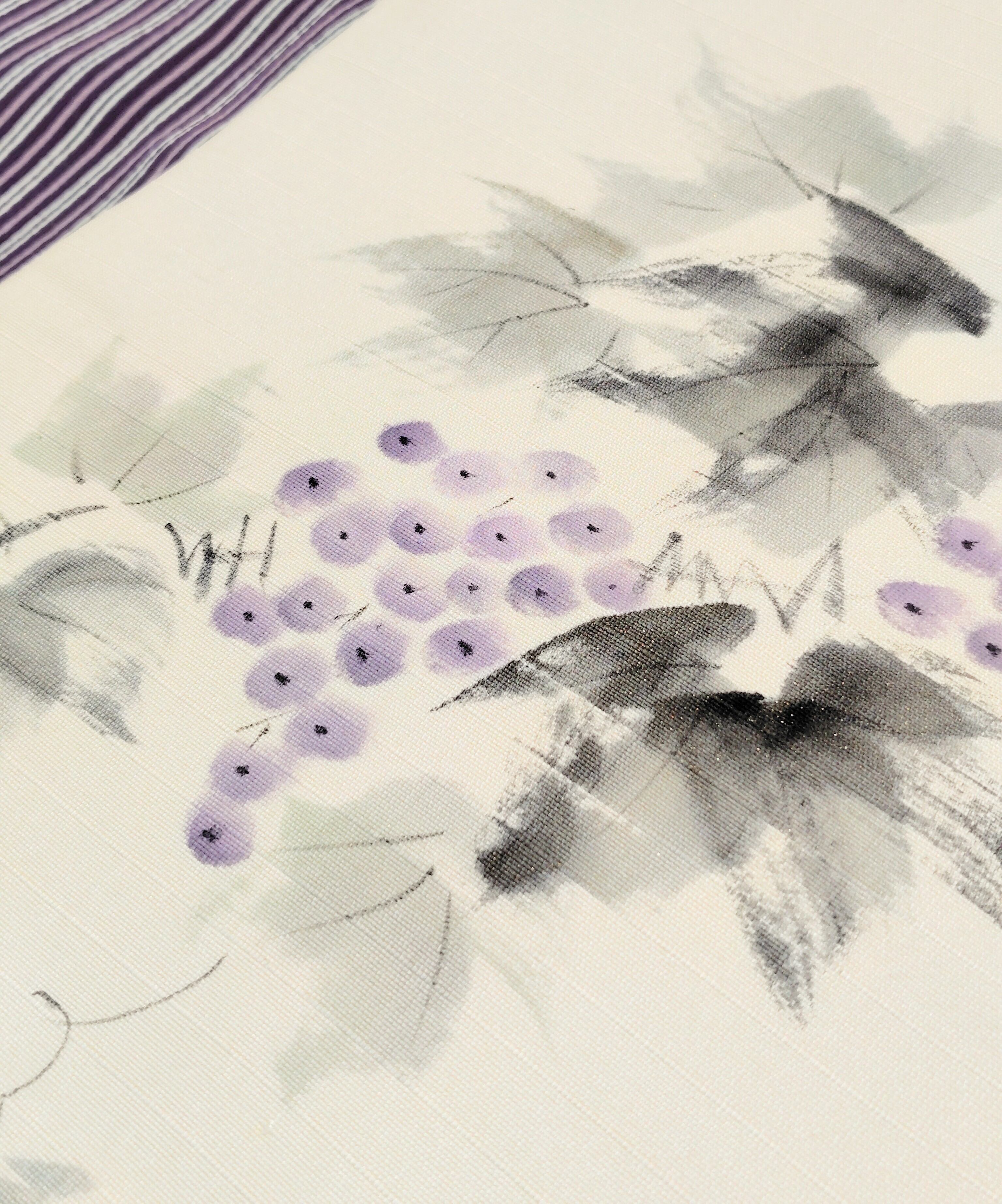 また葡萄文様は豊作や子宝に恵まれる子孫繁栄などの意味がある吉祥文様なので、葡萄の季節以外にもお召し頂けます◎