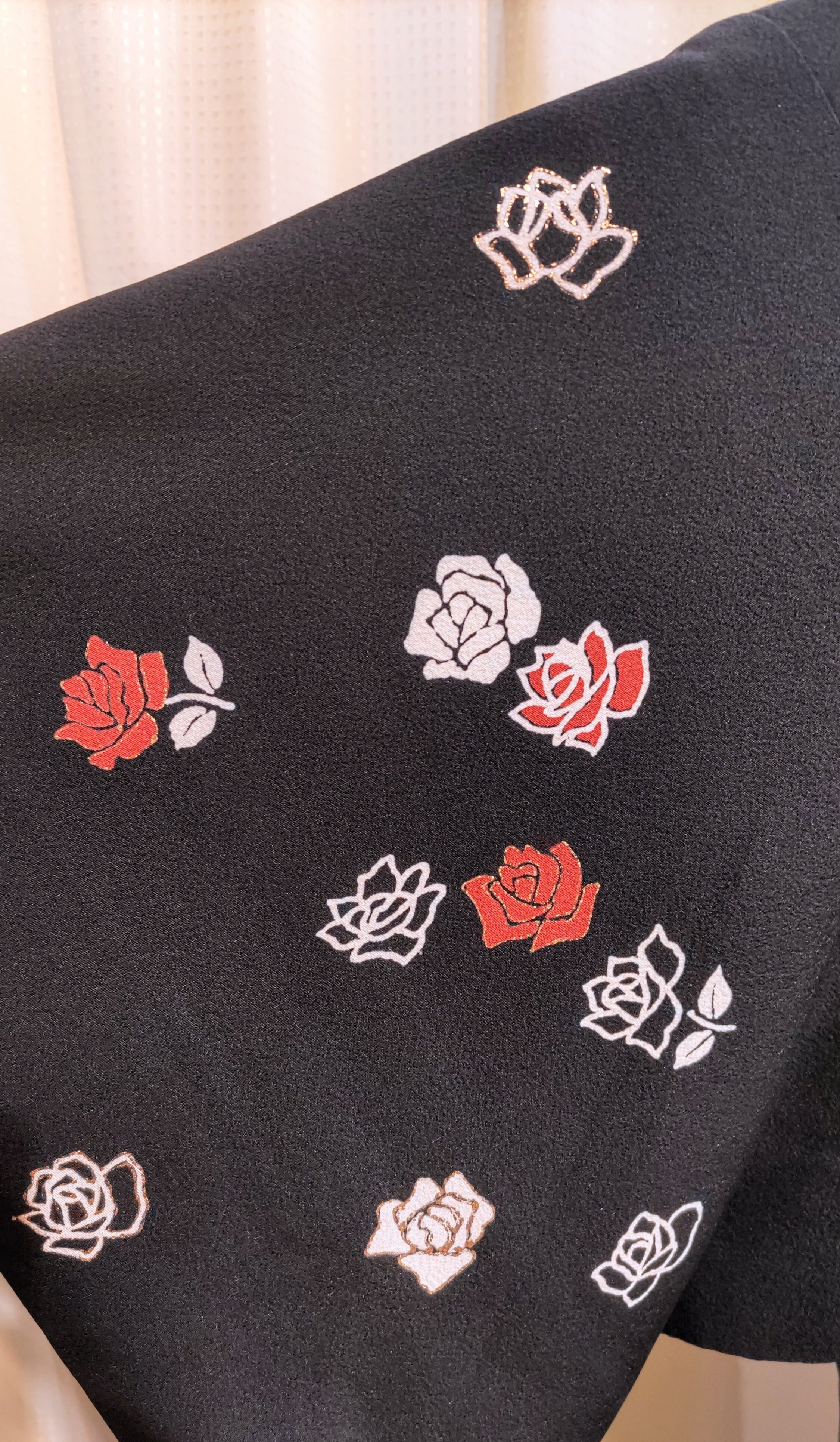 黒地に薔薇柄の羽織り〜白薔薇、赤薔薇、金の縁取り〜