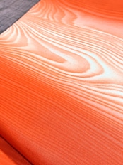 (暖色系のライトでは橙色寄りに、白色のライトでは赤茶色寄りに見えます。)