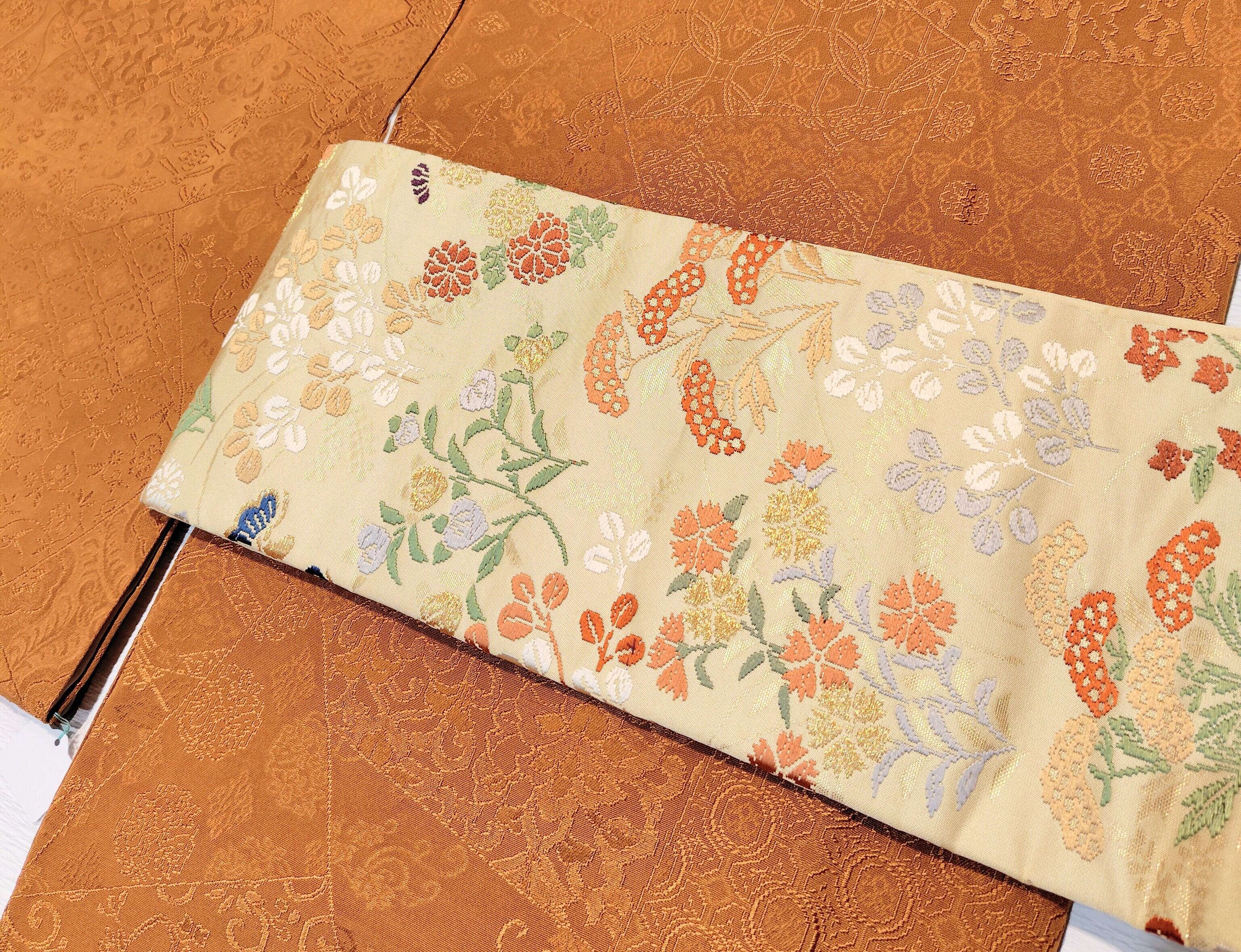 付け下げ小紋、色無地、江戸小紋、おめかし小紋……おめかししたい日のお着物を、よりよく見せてくれる帯です◎