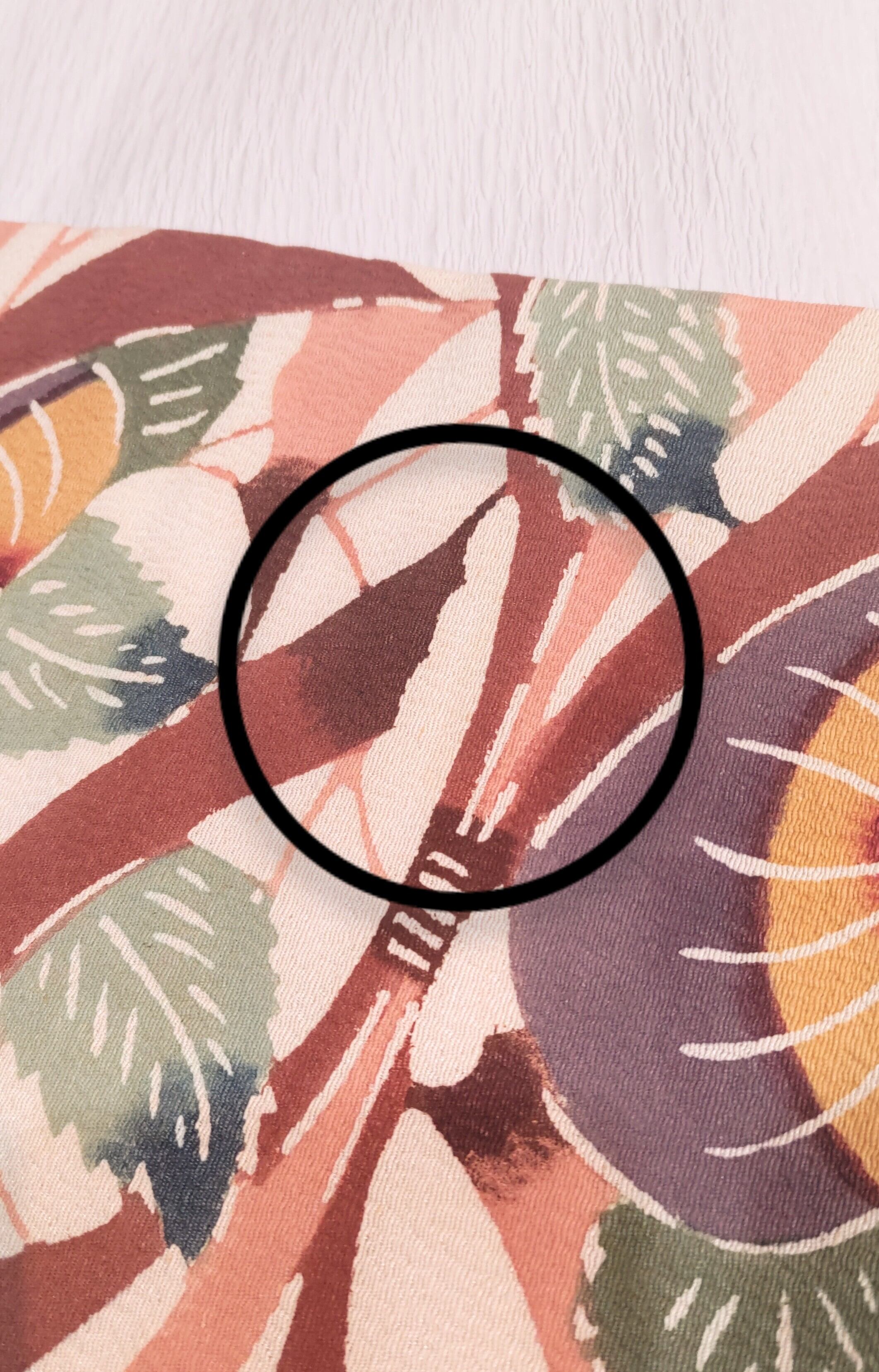 白地に淡く優しいピンク色と茶色が主となっていて、淡い金茶色(ベージュ色より)、緑色の濃淡、紫色、エンジ色と落ち着いたお色が差し色になっています。可愛い過ぎずシックな印象で大人な印象です。