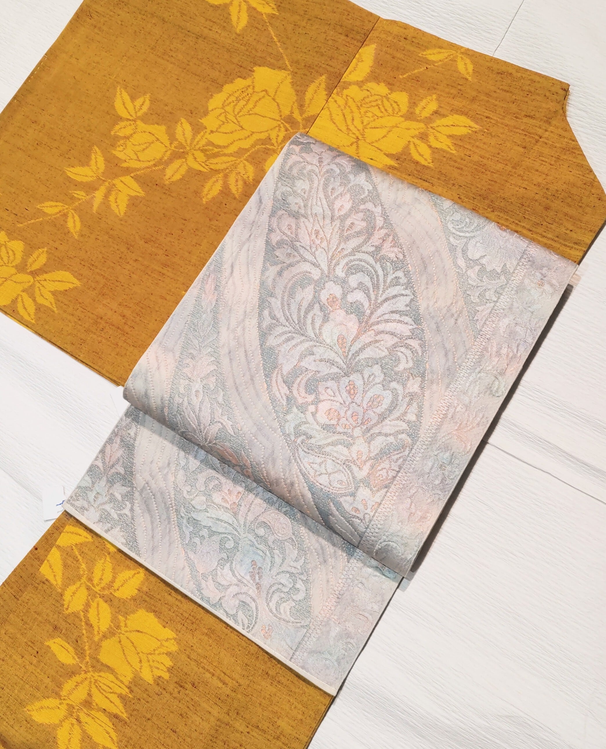 (コーディネートの参考にお着物と帯を組み合わせている物もありますが、単品での販売となります。参考コーディネートでお召し頂く場合はそれぞれご購入くださいませ。)