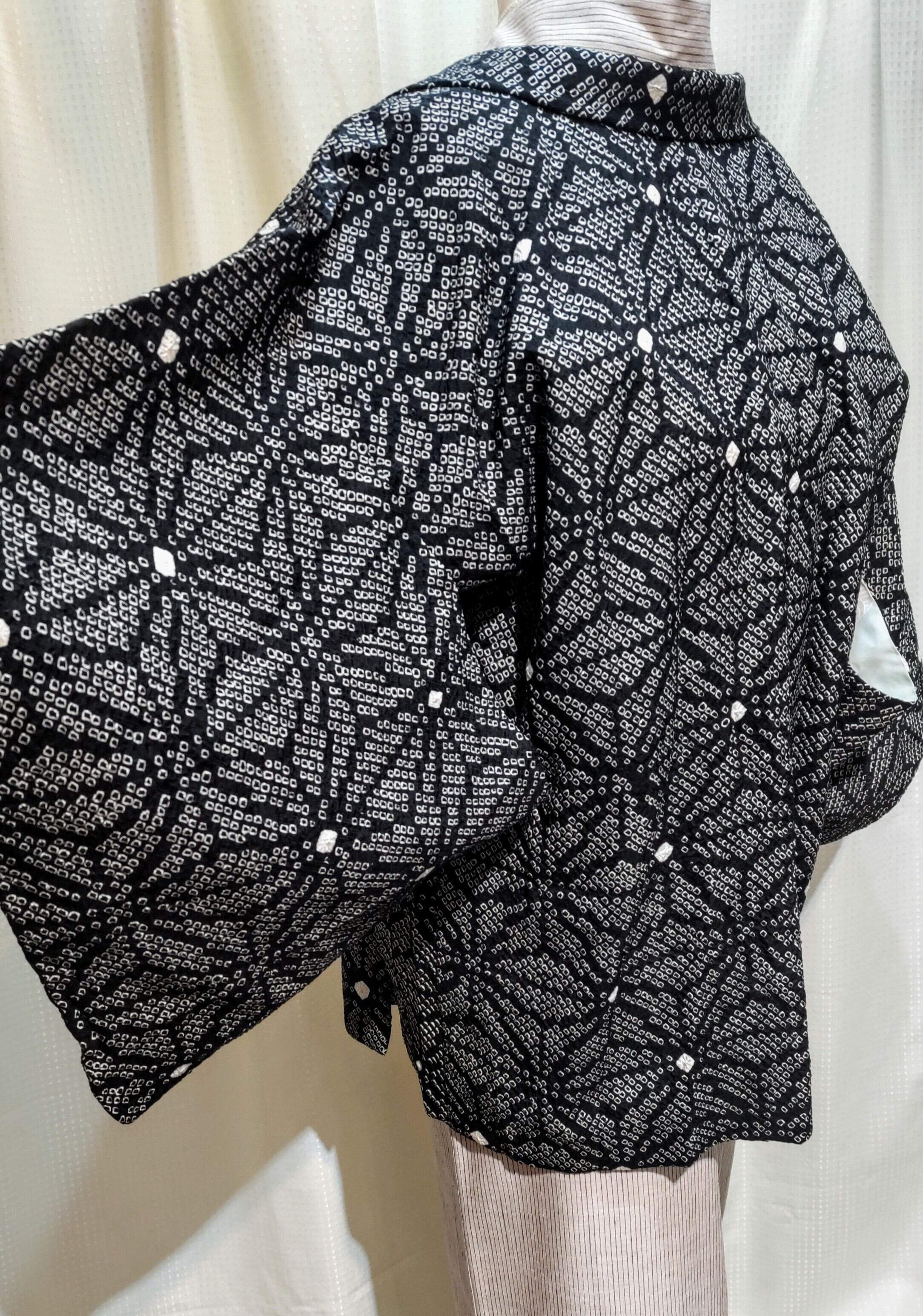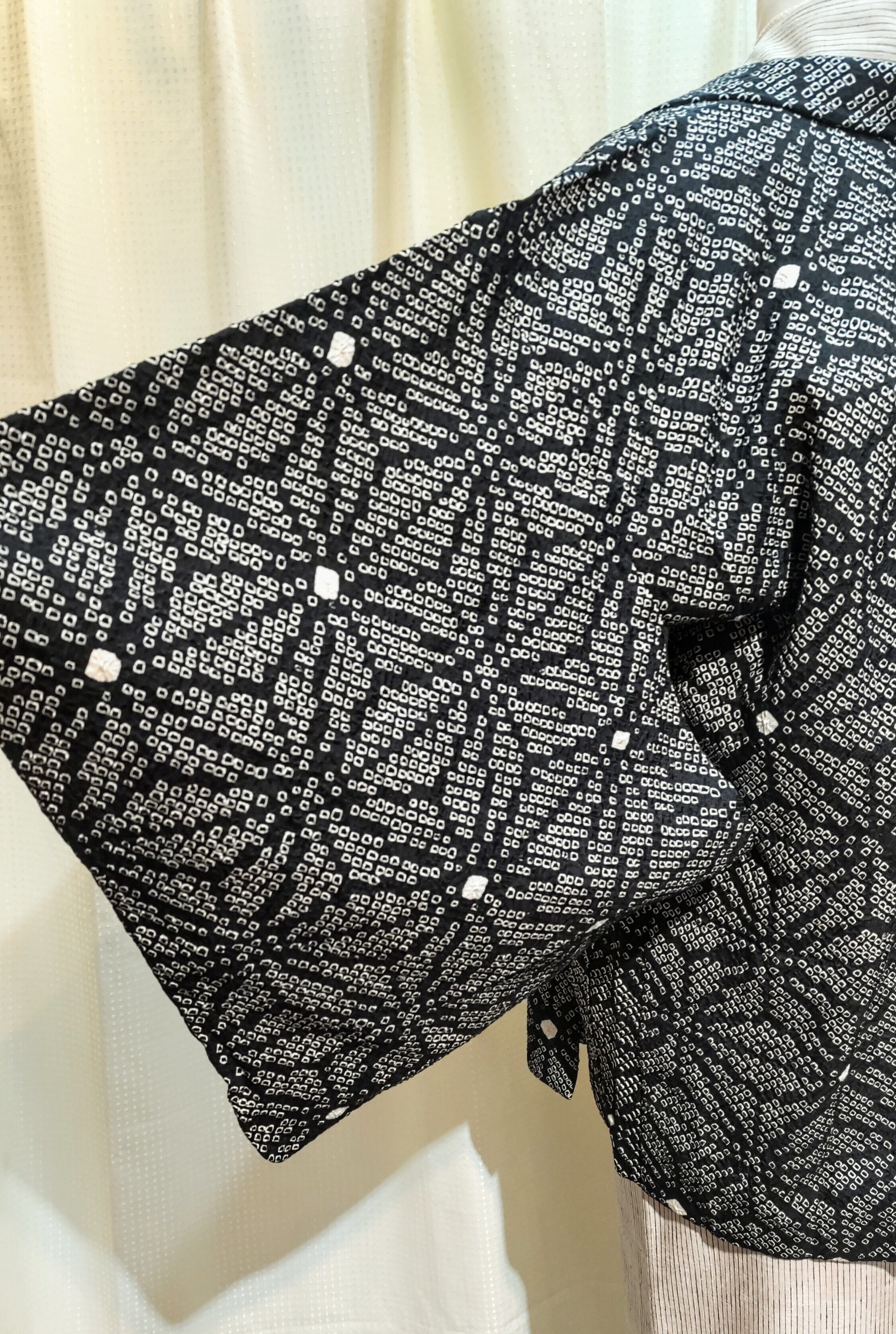 黒地に白色の総絞りの羽織り〜麻の葉柄〜