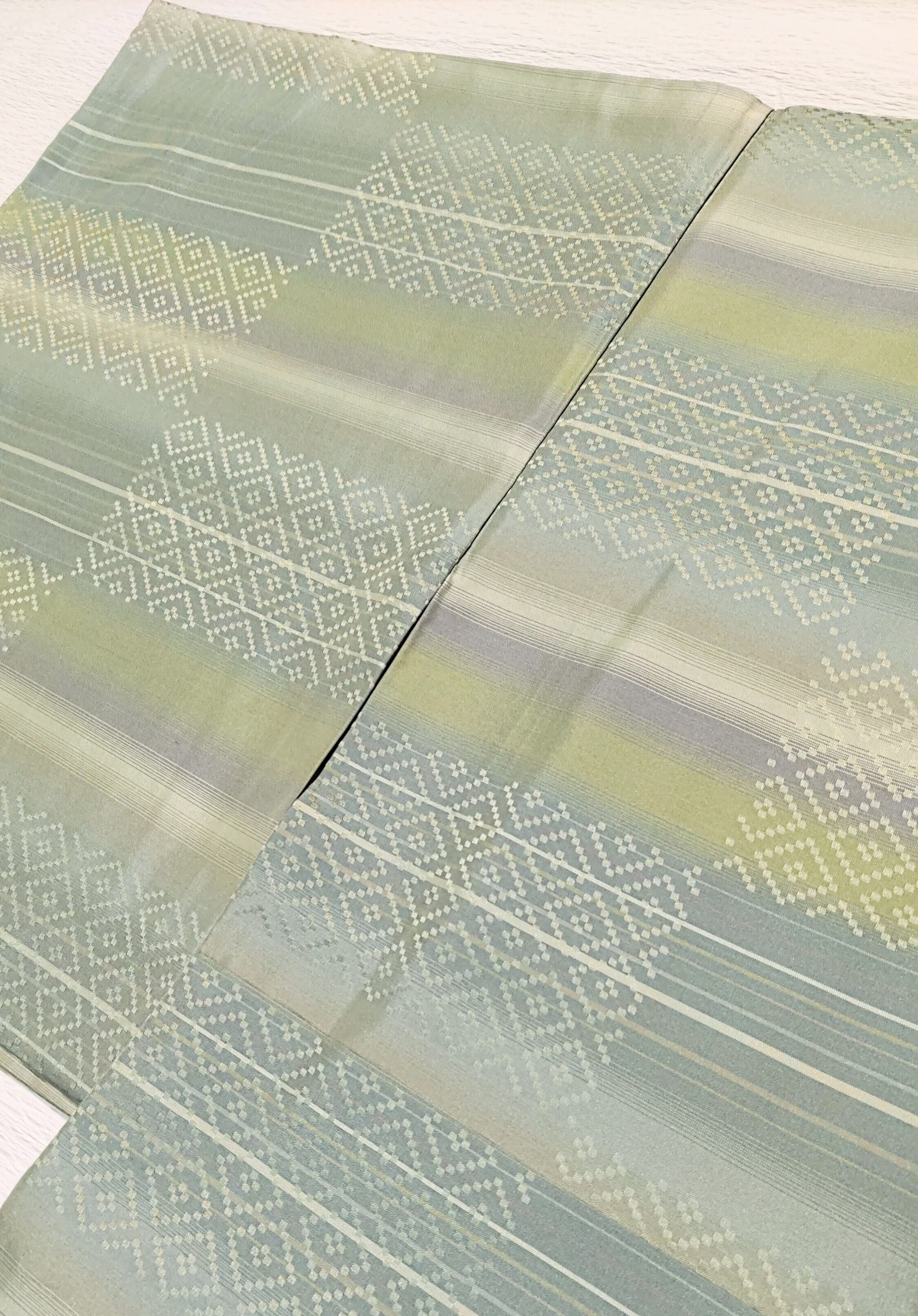 花織織 淡くくすんだ青緑色にグラデーションです。