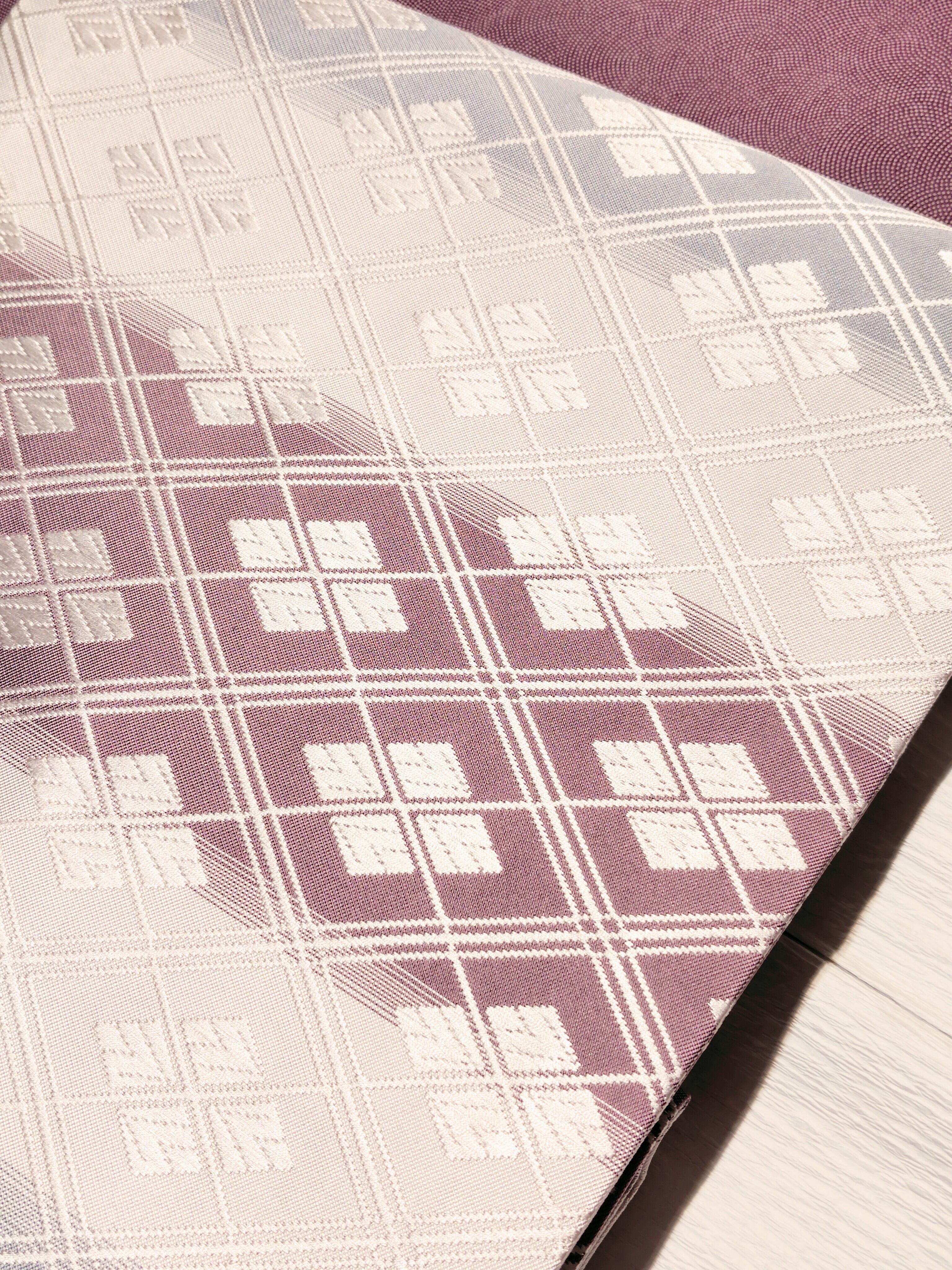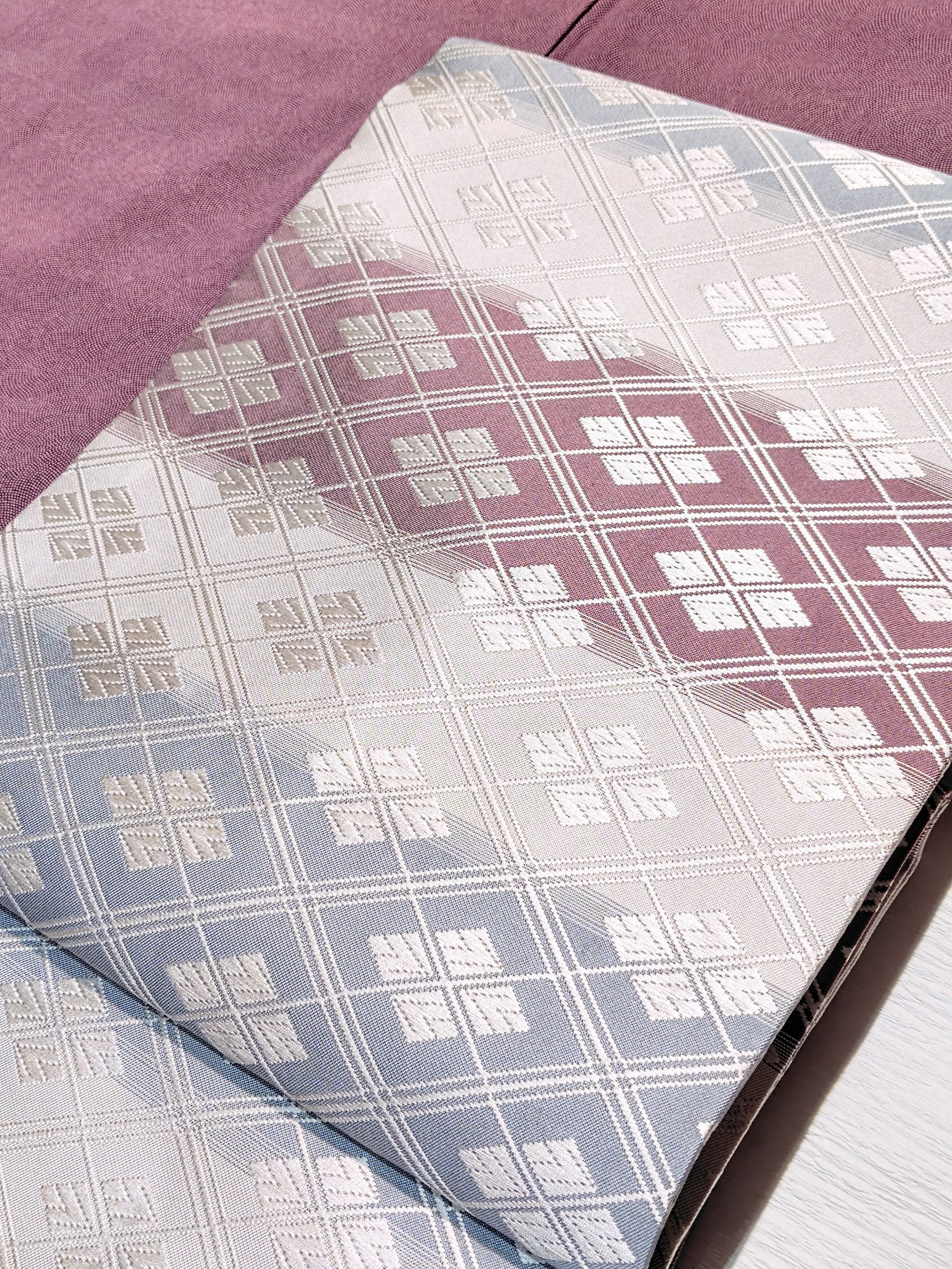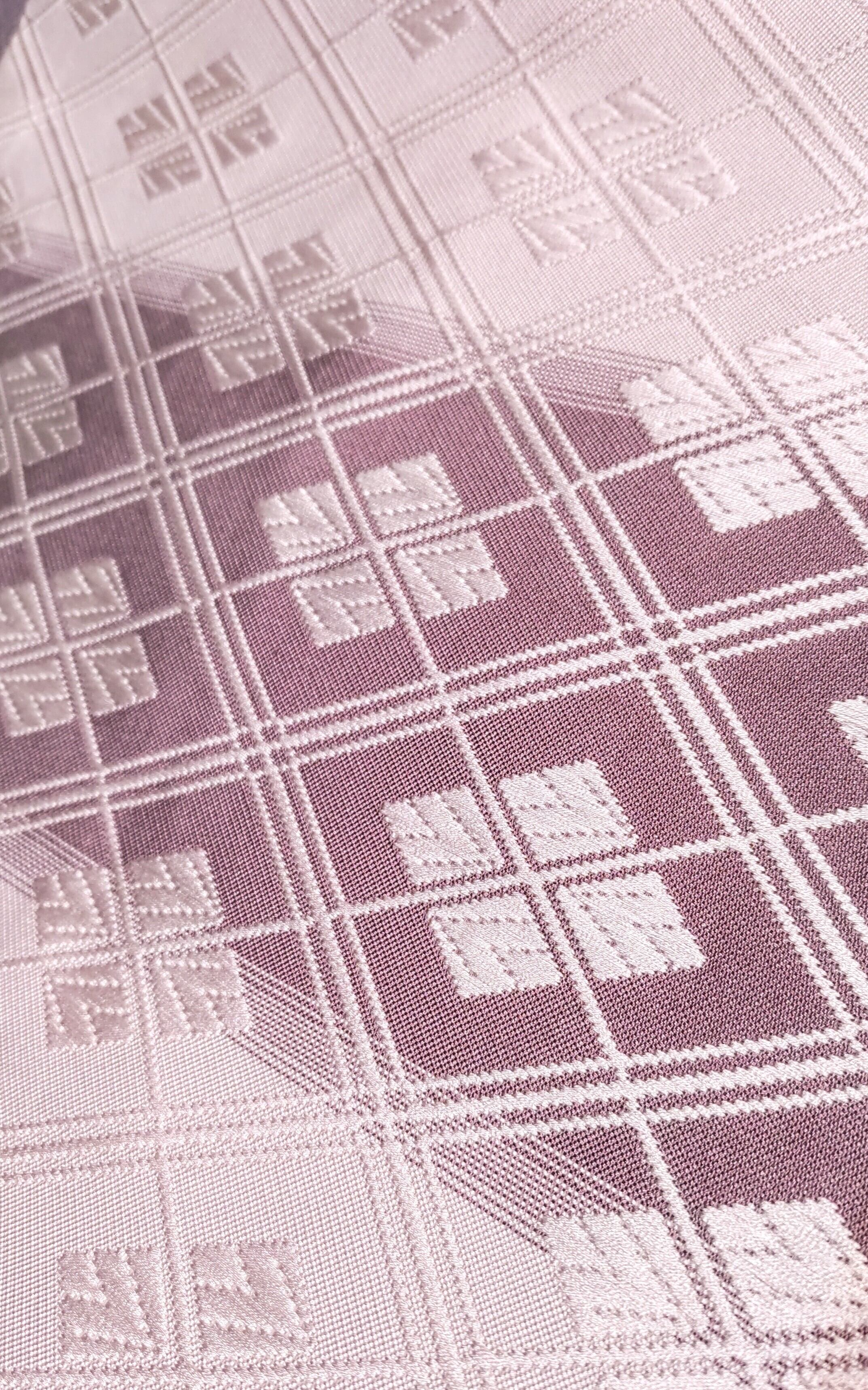 ぷっくりとした唐織での重なり合うような菱形も古典柄ながらモダンな印象。