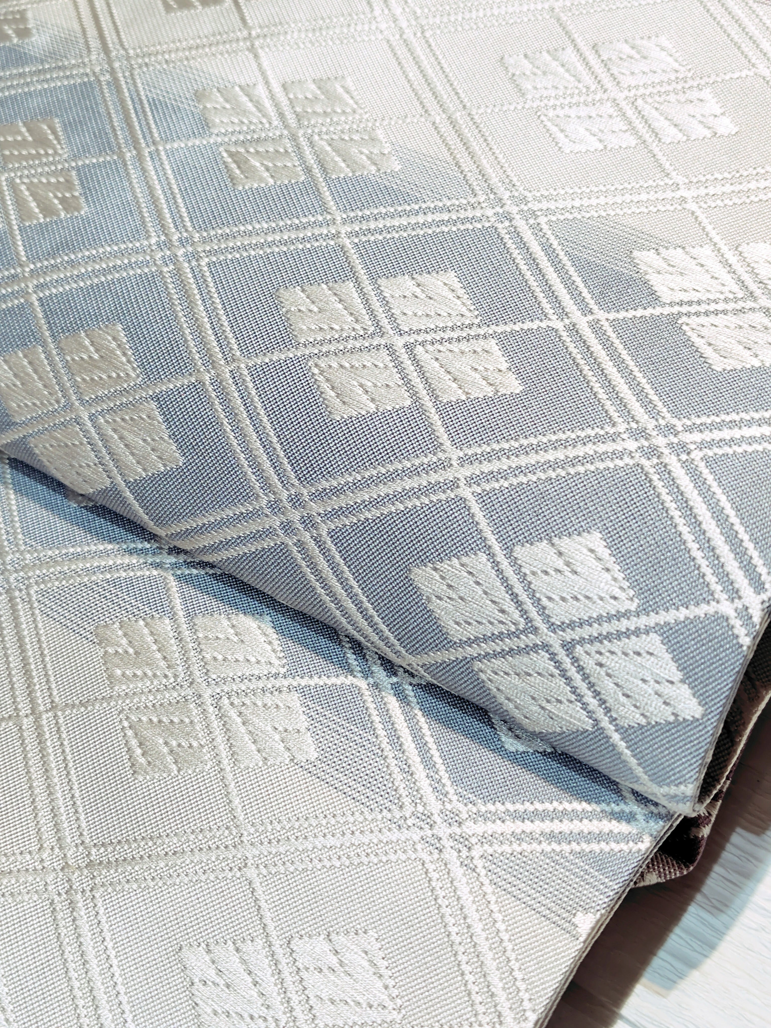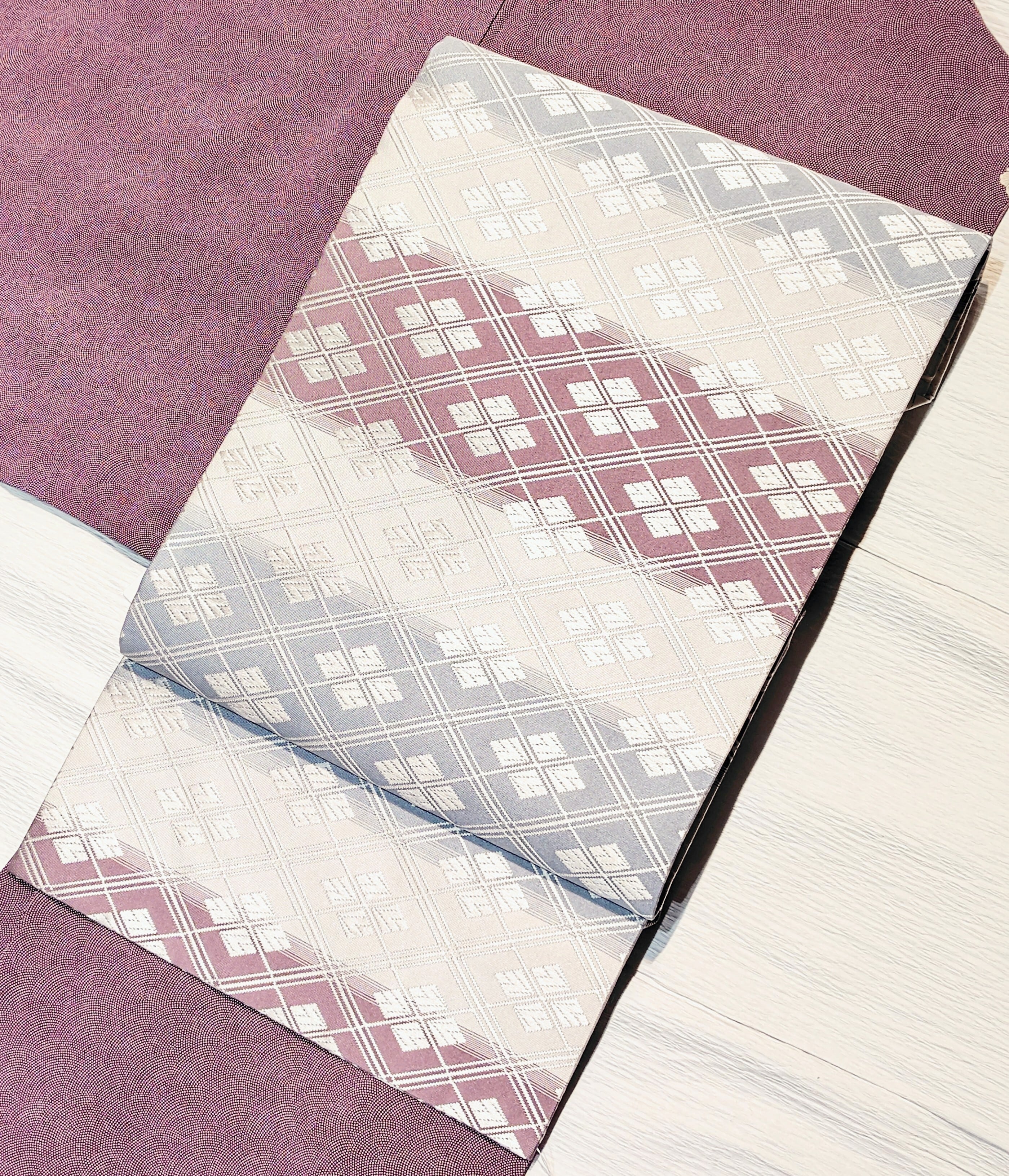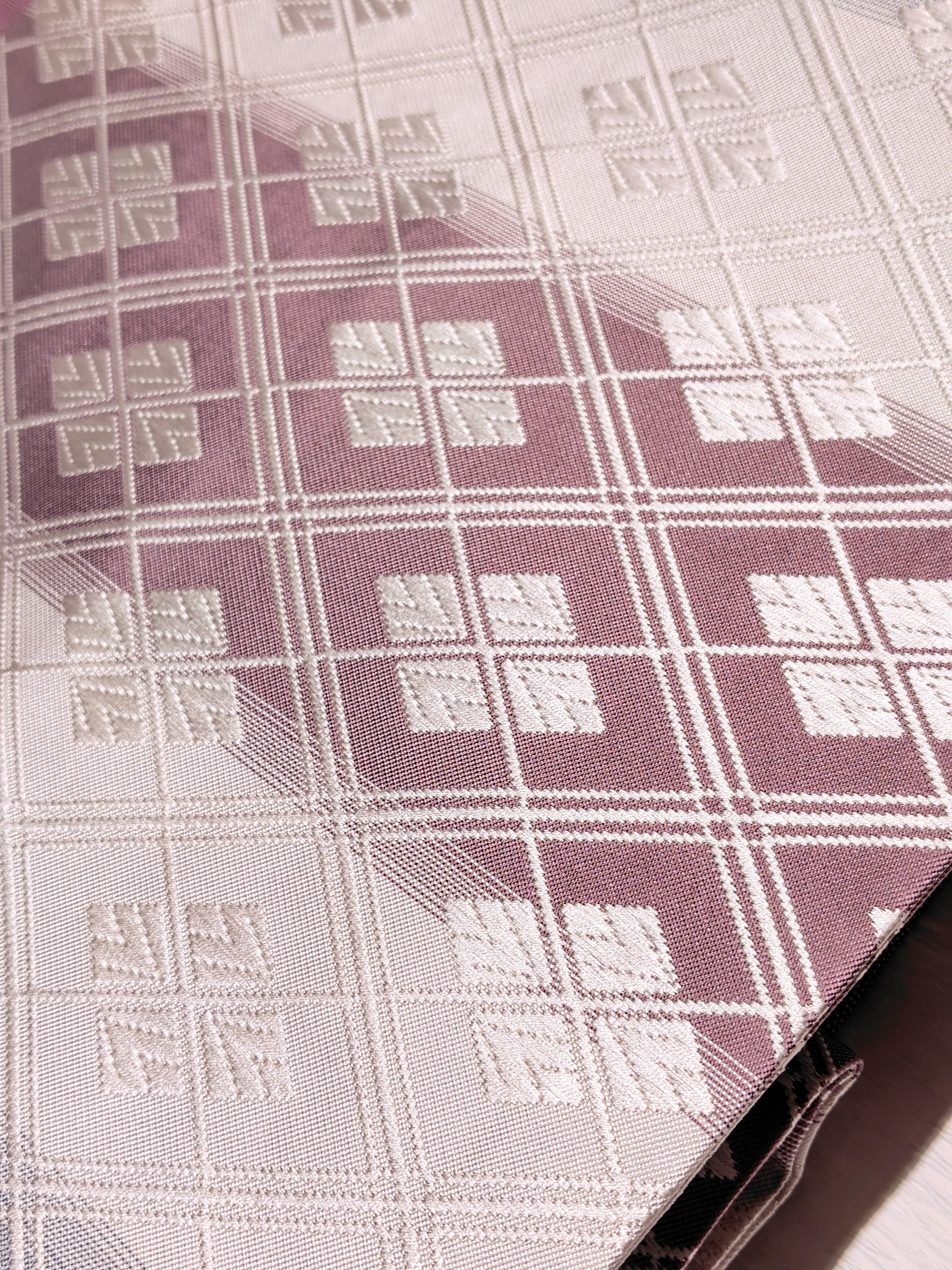 ぷっくりとした唐織での重なり合うような菱形も古典柄ながらモダンな印象。