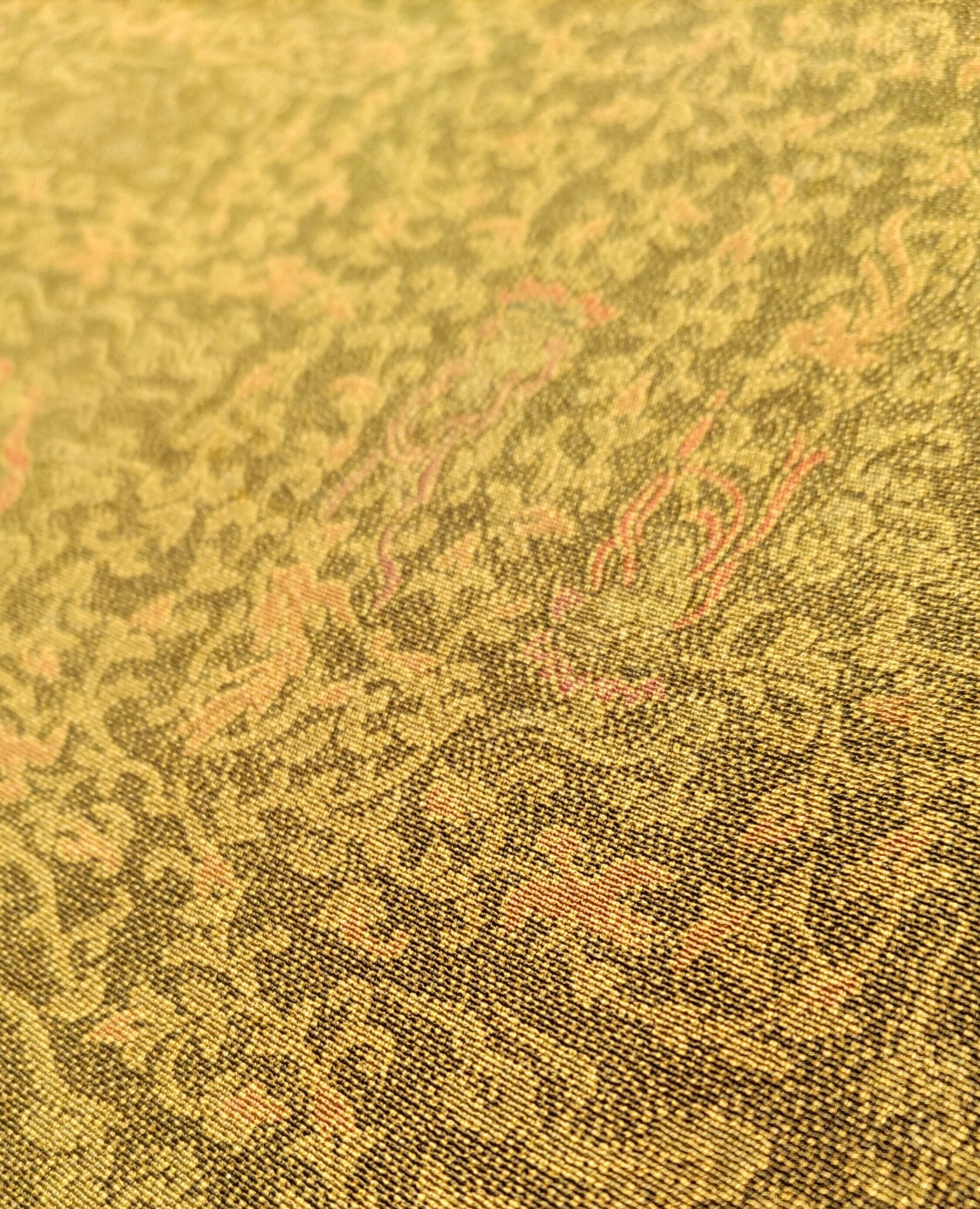 天人像、龍、獅子、飛天、鳳凰などの、おめでたくありがたい文様の組み合わせで、上品で繊細な美しさと格を持つお着物です。