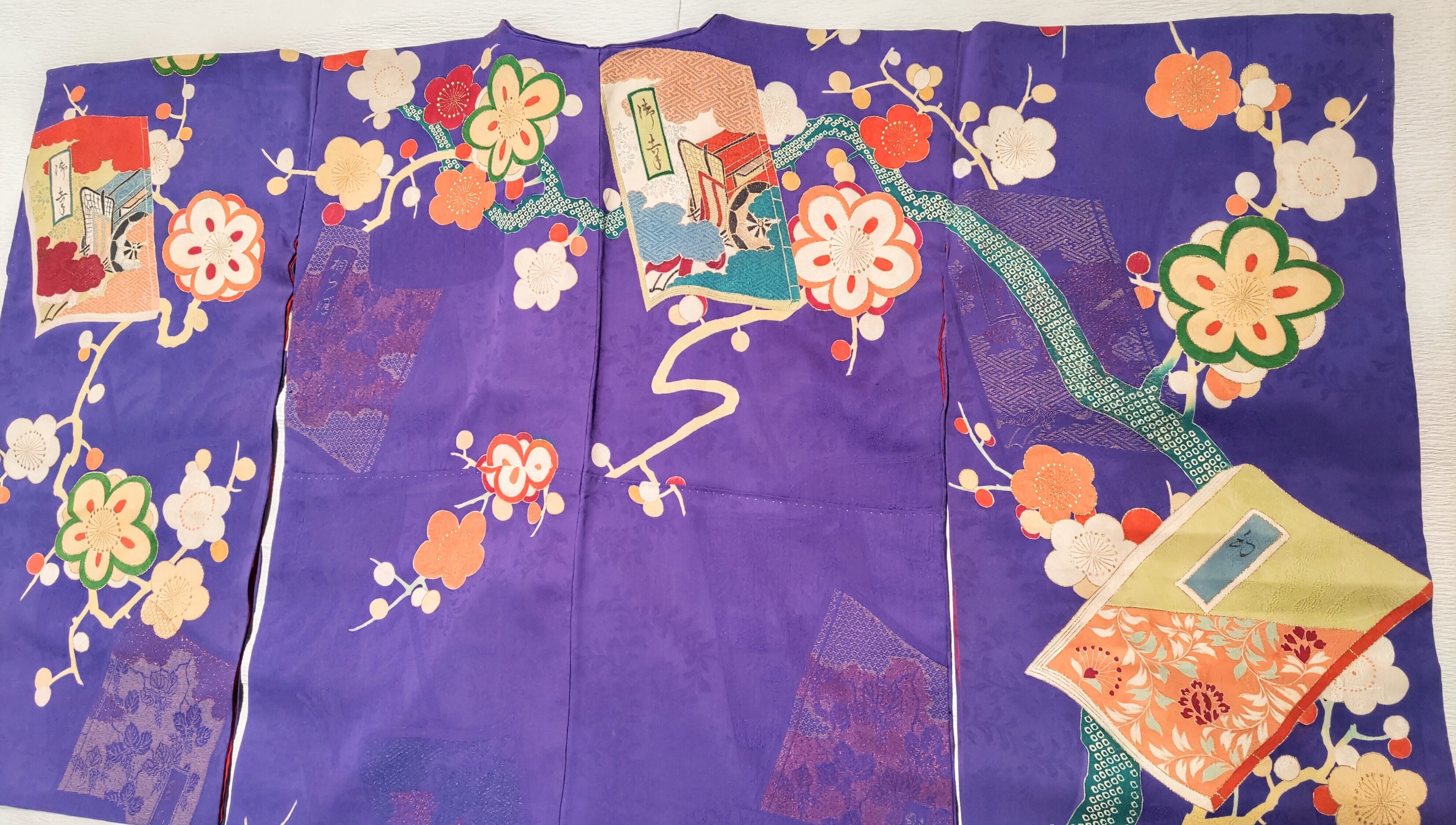 こちらアンティークのお着物、なかなか出会えない袖丈です。