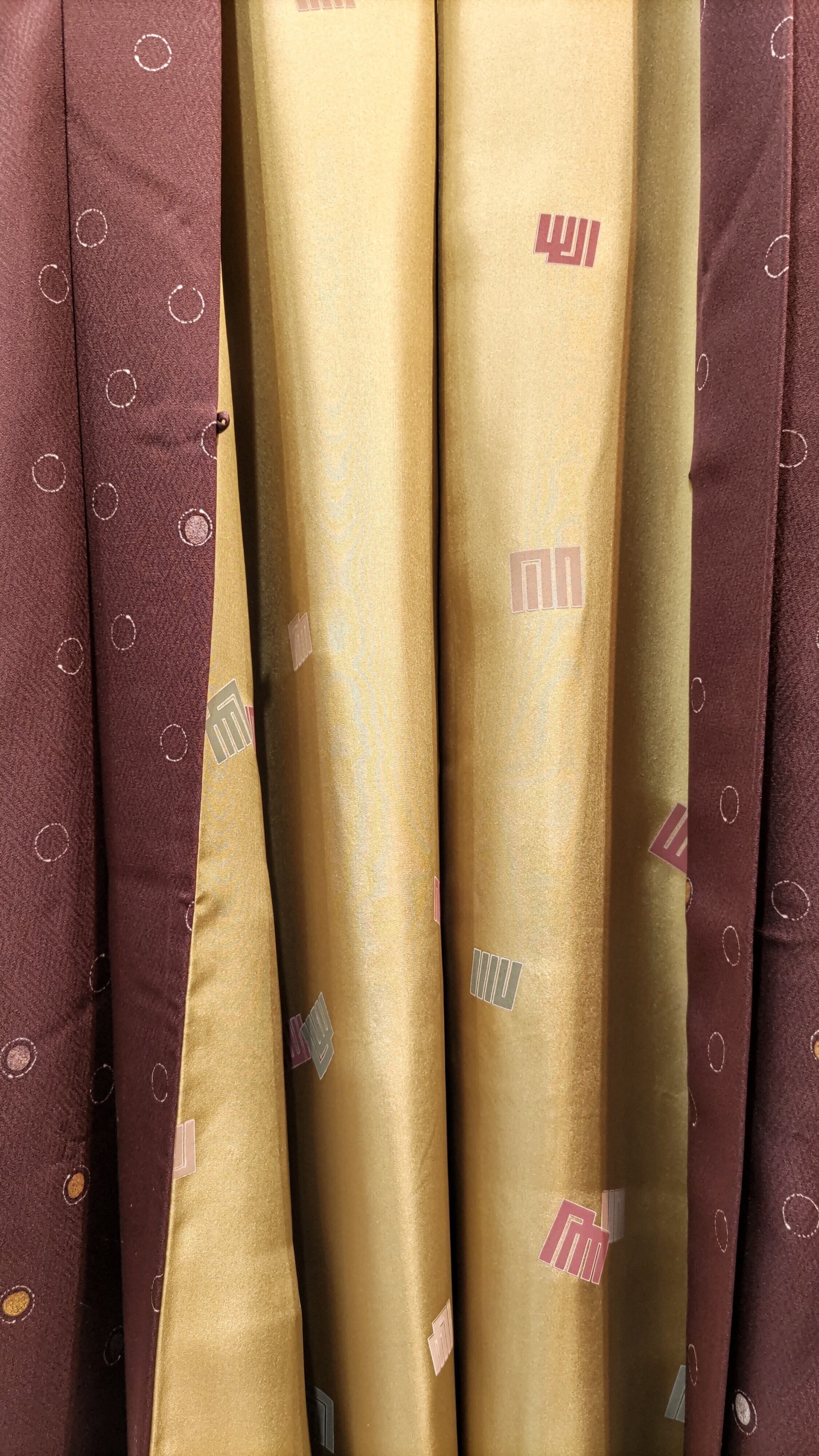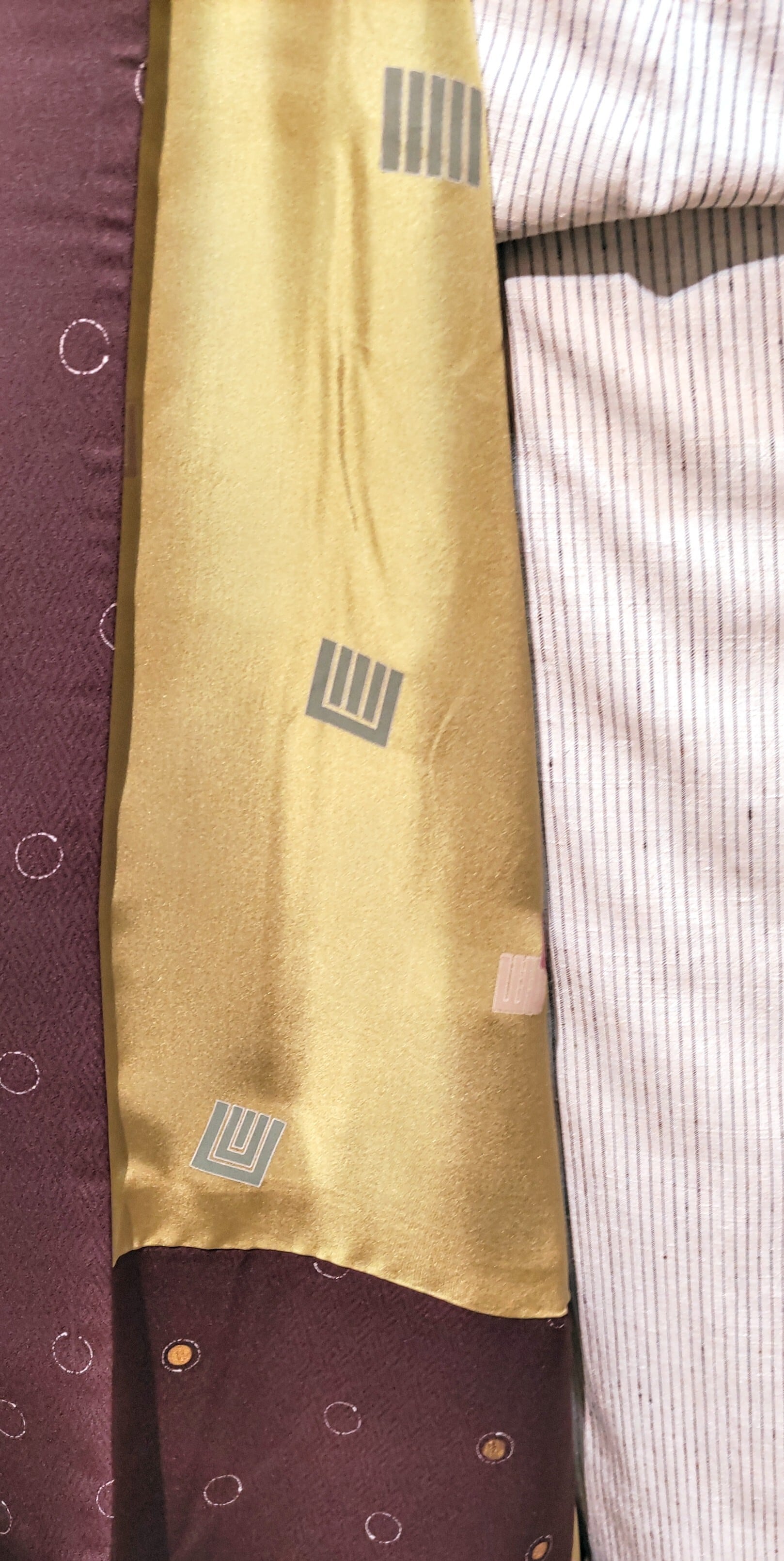 水玉柄も金茶色と桜の花弁のような渋さと淡さのあるお色で、上品な雰囲気です。