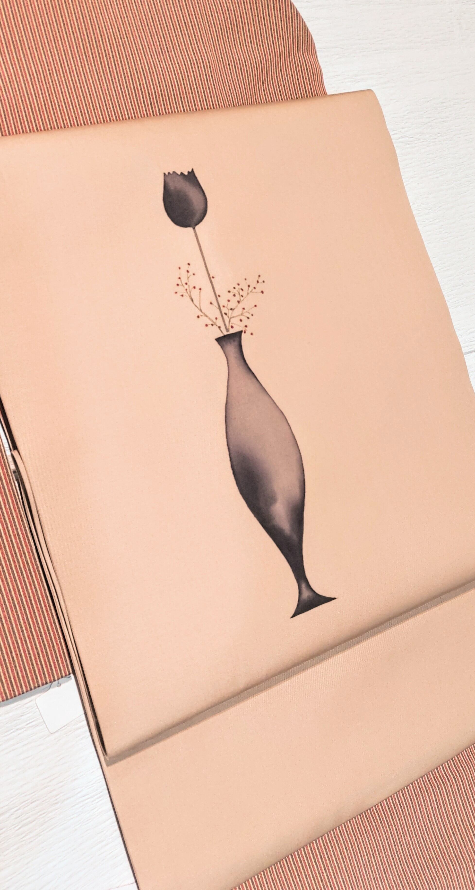 赤色の小さなお花の差し色が詩的で、絵画のように目を惹かれる……そんな帯です。