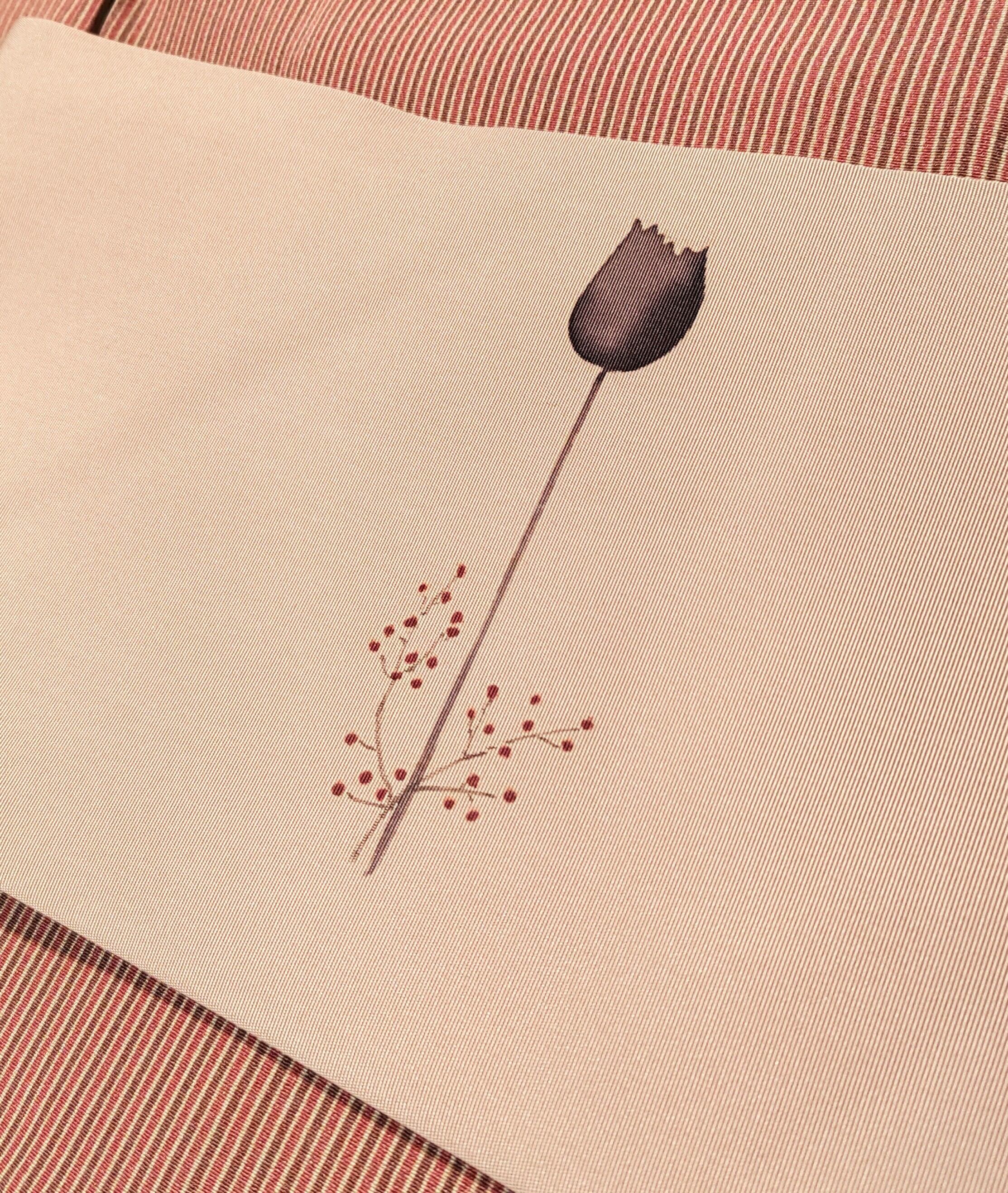 絵画のようなチューリップ柄 塩瀬の名古屋帯