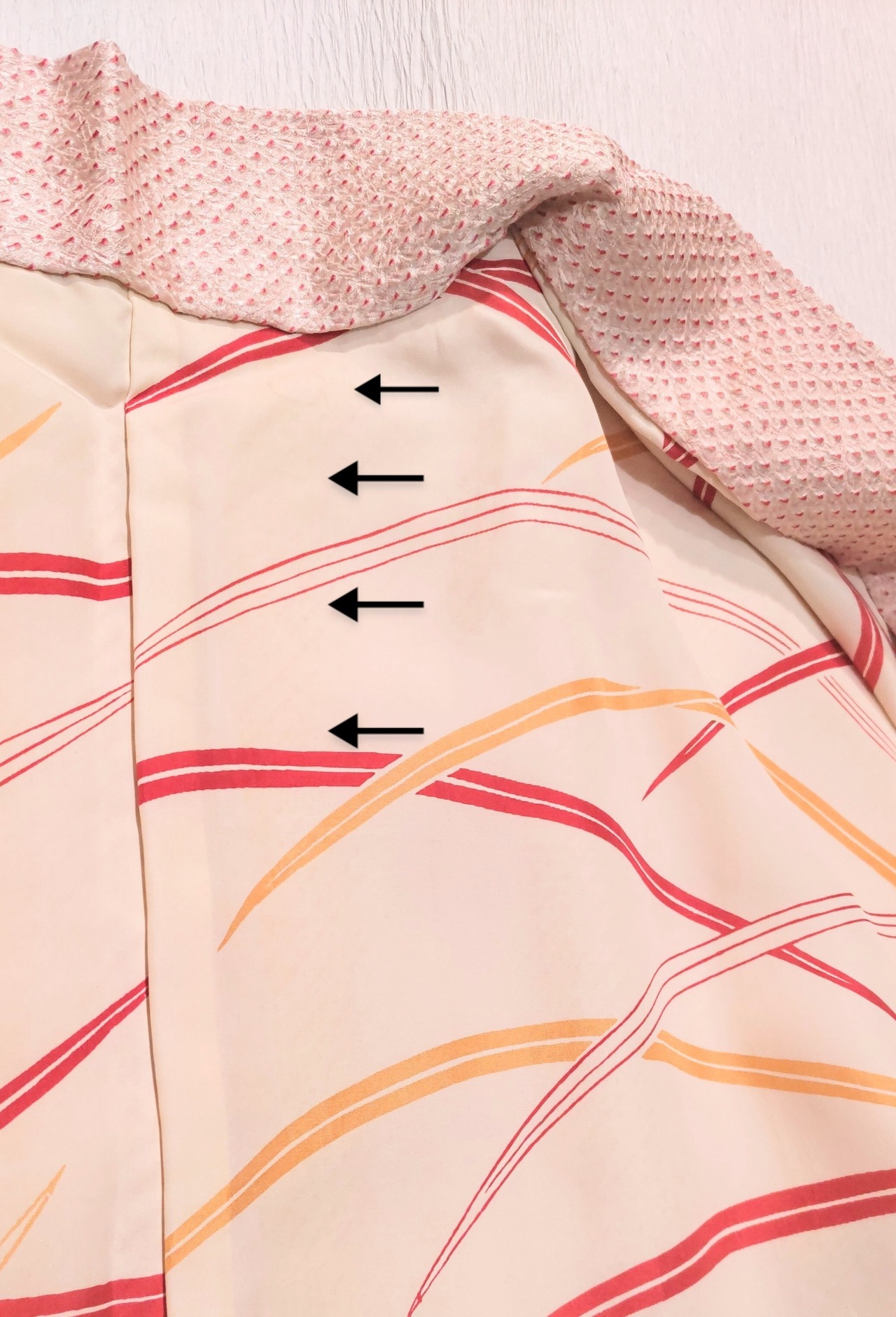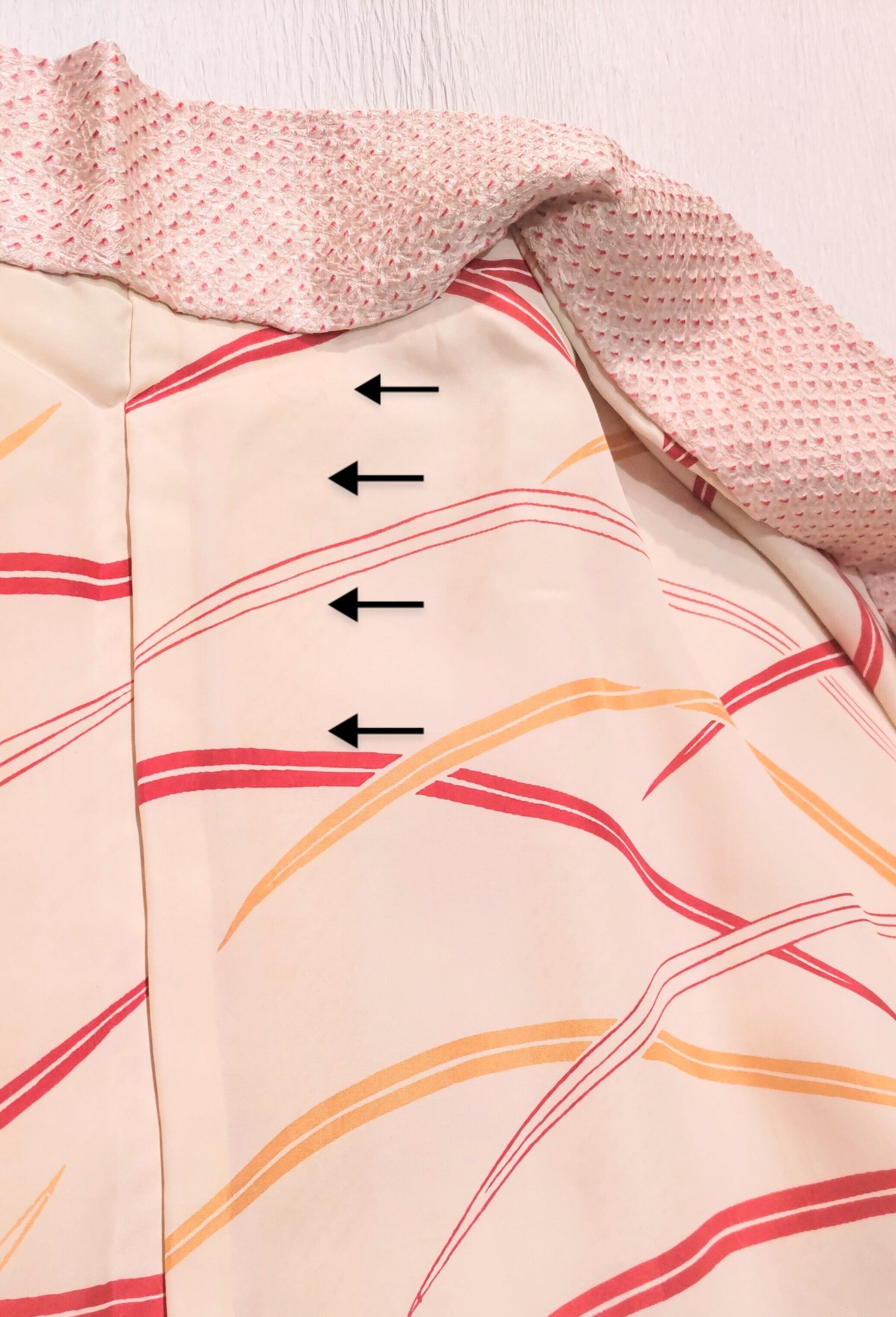 淡いお色なのに、大きく目立つシミが見た当たらないこと、また絞りの羽織で裄長めも貴重な嬉しいポイントです◎
